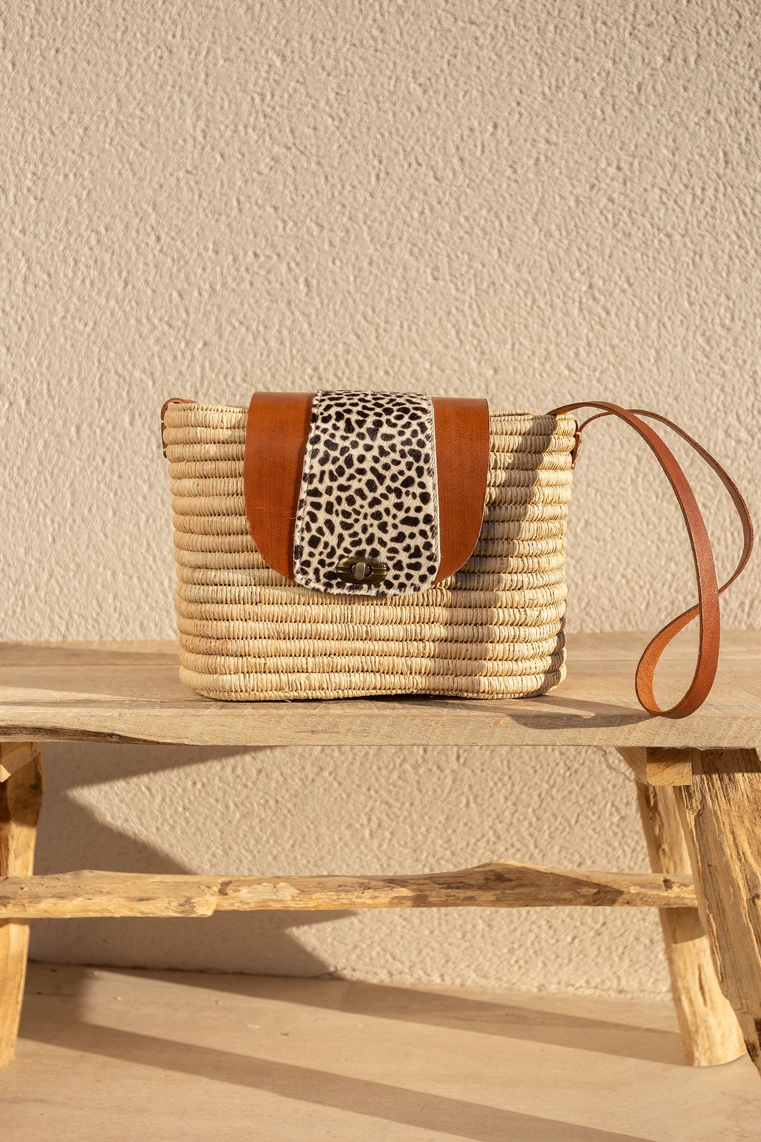 Sac à main signé NOMA, mélange élégant entre le cuir et motifs.