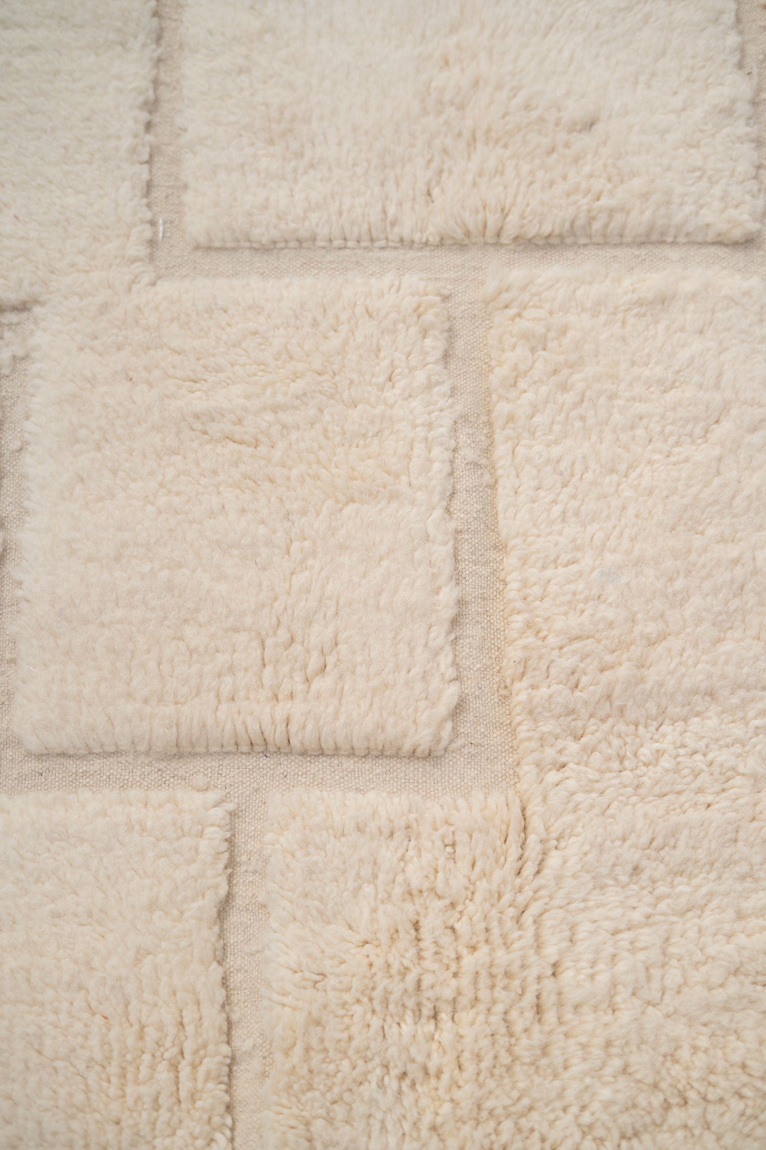 Tapis berbère écru aux lignes ton sur ton. Subtil et harmonieux, il séduit par son relief discret et son élégance naturelle, parfait pour une ambiance douce et contemporaine.